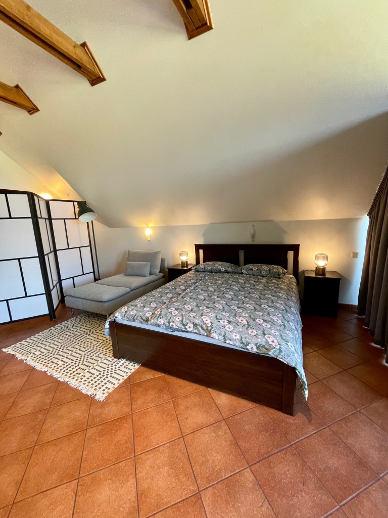 Jaukus ir stilingas pirmo aukšto numeris su privačia terasa ir atskiru įėjimu iš lauko. Jame – komfortiška 160 cm pločio dvigulė lova, vonios kambarys su dušu, mini virtuvėlės zona su patogia virtuvės salele ir minkštasuolis, kuris gali būti transformuojamas į papildomą viengulę lovą. Idealu romantiškam poilsiui.