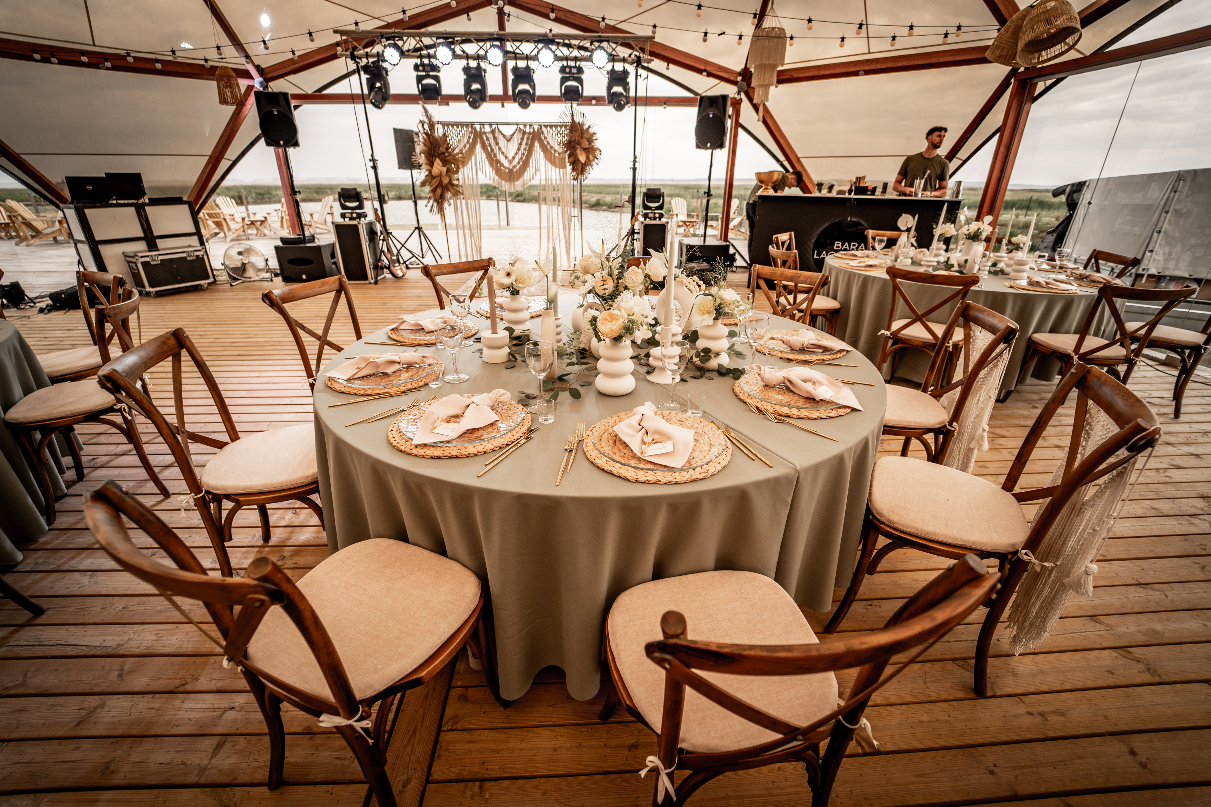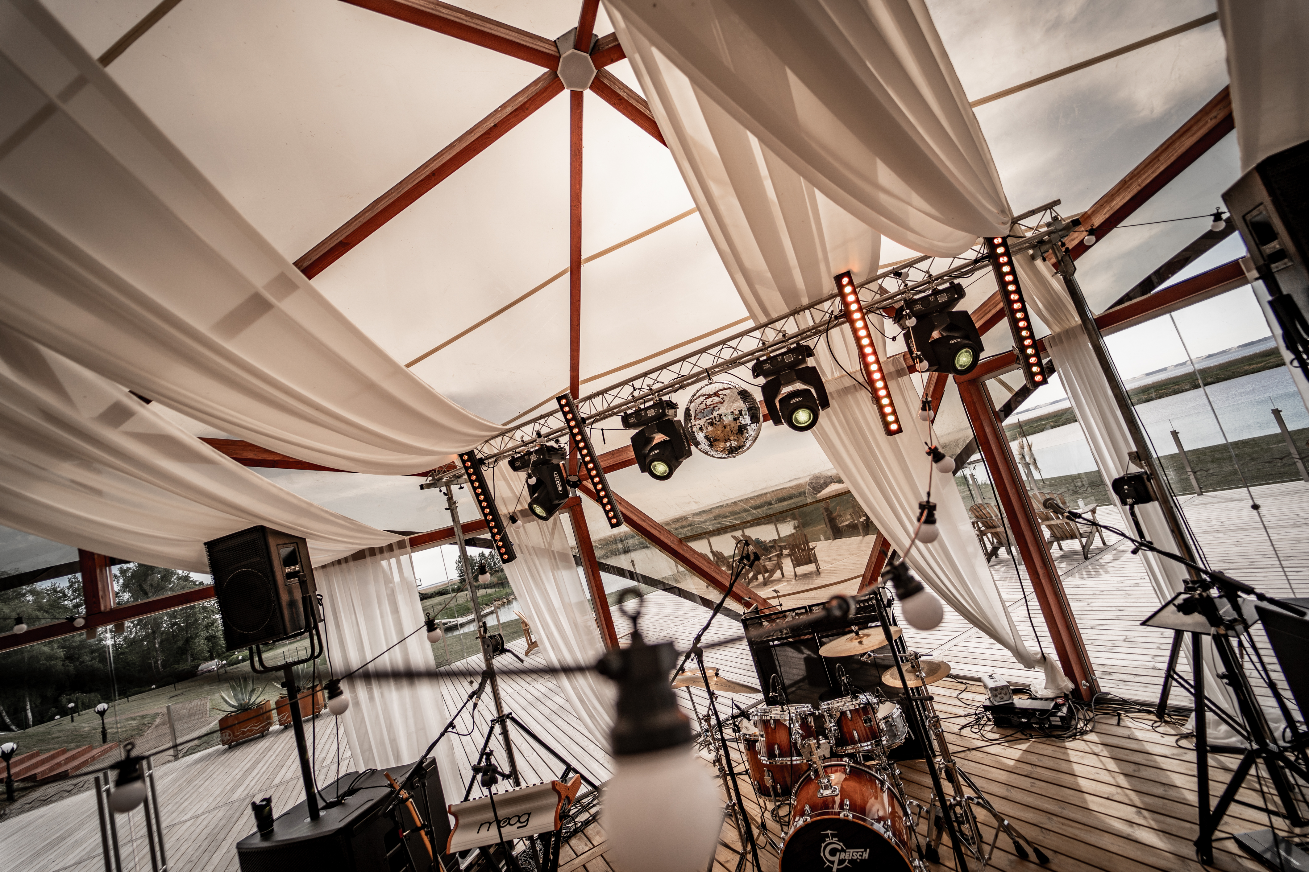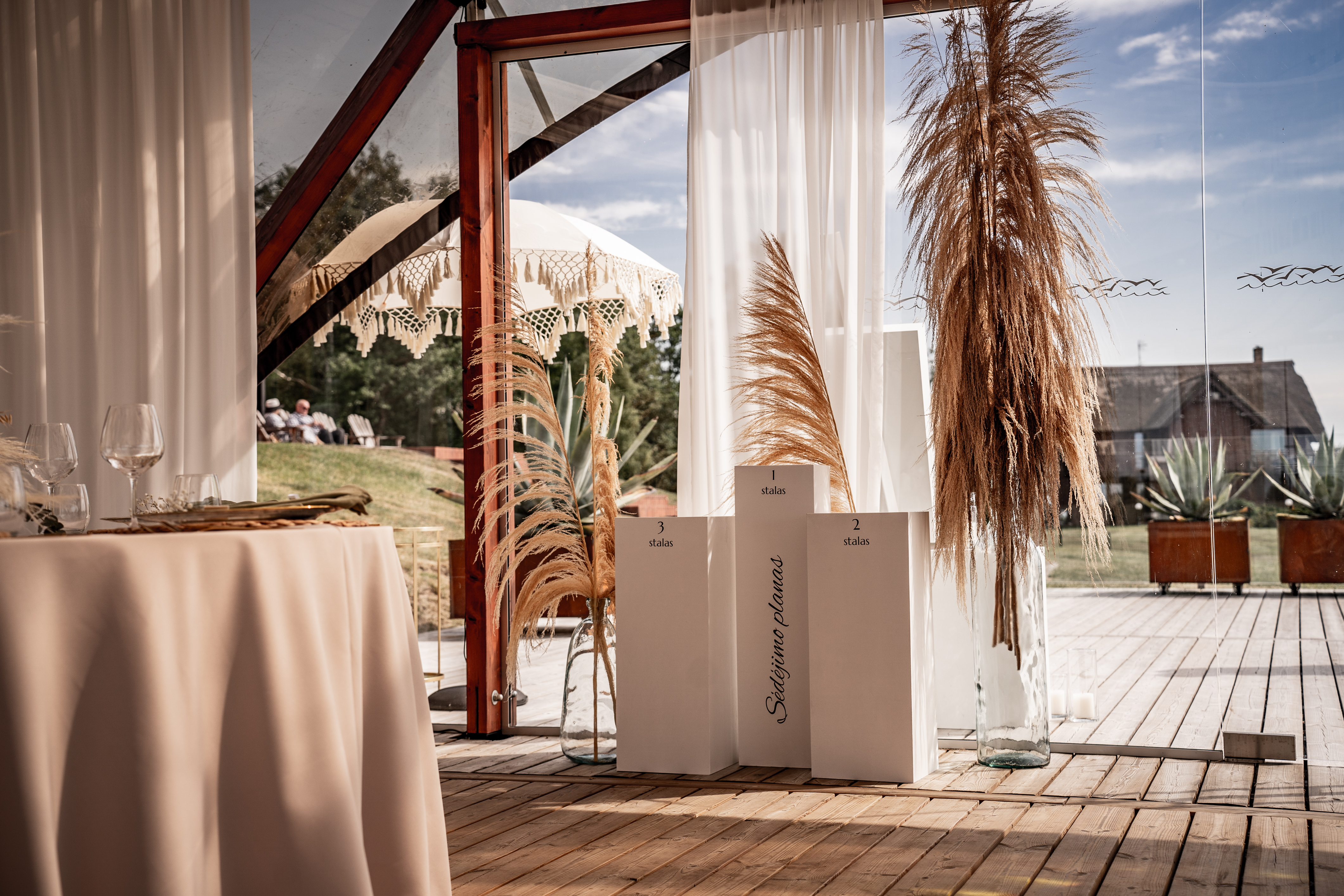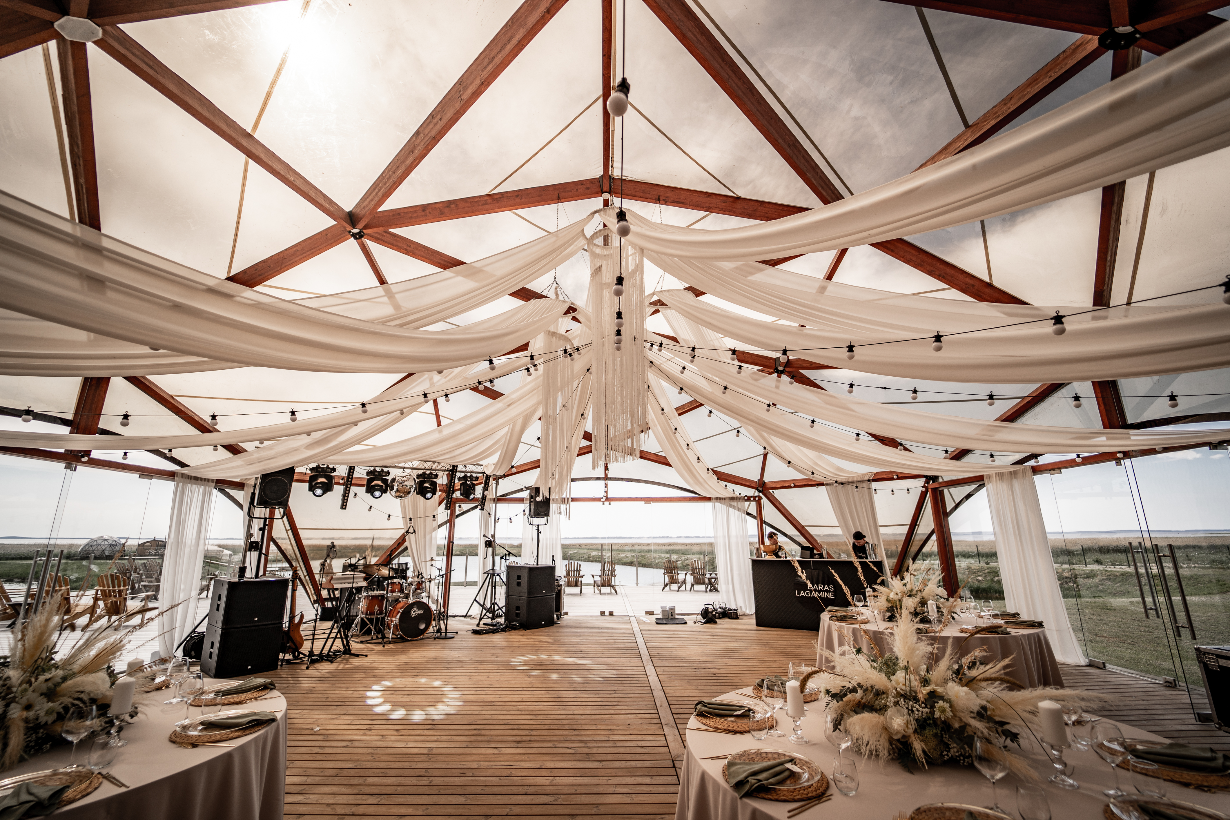 Pirmąją valandą rekomenduojame praleisti lauko terasoje, vaišinantis užkandžiais ir sveikinant šventės kaltininkus, o po to tęsti renginį jau kupolo viduje.